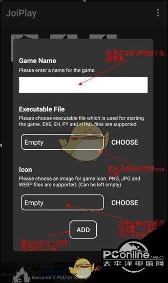 2、点击文件夹之后,我们可以看到下图所示的内容,我们可以更具下图红色文字的提示,进行操作。游戏名字可以乱填,主要用于区别,你自己理解是啥游戏即可。