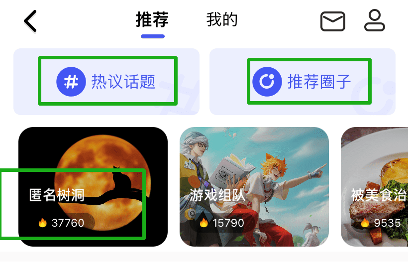 圈子动态:用户可以在里面发布自己想发布的话题,面向所有用户,同时可以同步到自己的聊天群。除此之外还有匿名树洞,里面可以随时诉说烦心事。