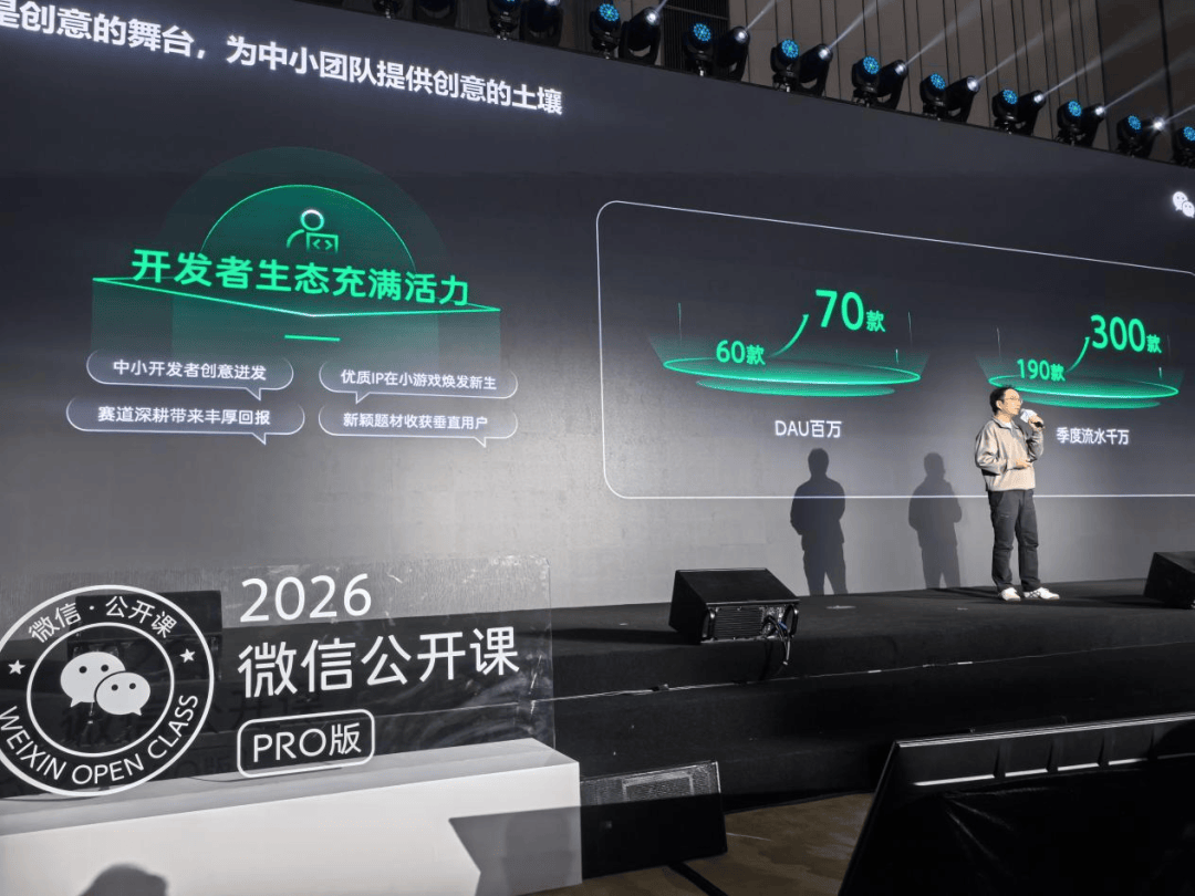 而在开发者回报方面,2025年,有近70款微信小游戏做到了百万以上的DAU,超过300款产品单季度流水超过千万元,有5000家开发团队首次在微信小游戏平台发布了产品。